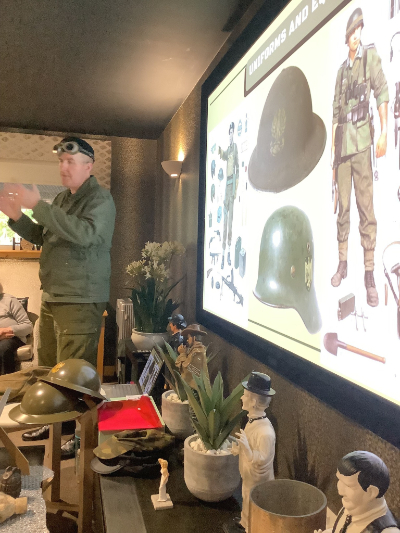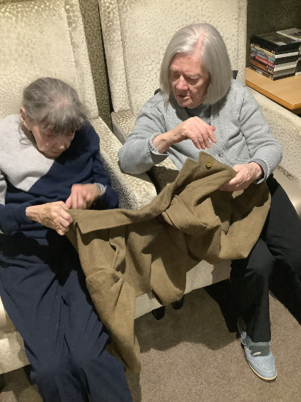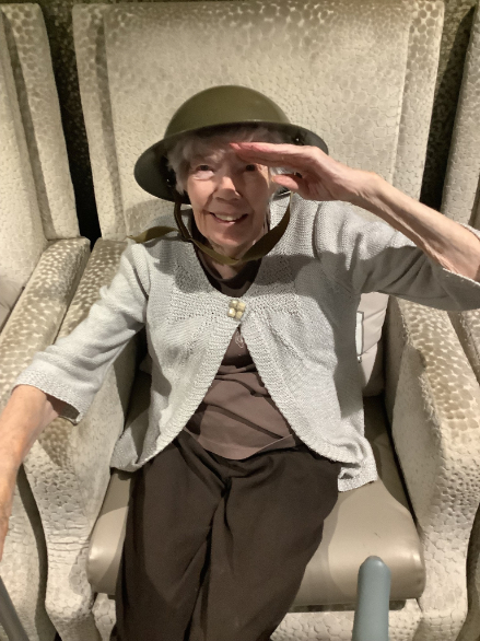 The event began with a fascinating presentation from our visiting speaker, who brought a collection of wartime clothing, equipment, and memorabilia for everyone to explore. Residents were able to handle items from the era, try on authentic hats and uniforms, and learn more about how everyday life looked during the 1940s. Seeing these objects up close sparked so many memories, and before long the room was full of stories and recollections that were both moving and inspiring.